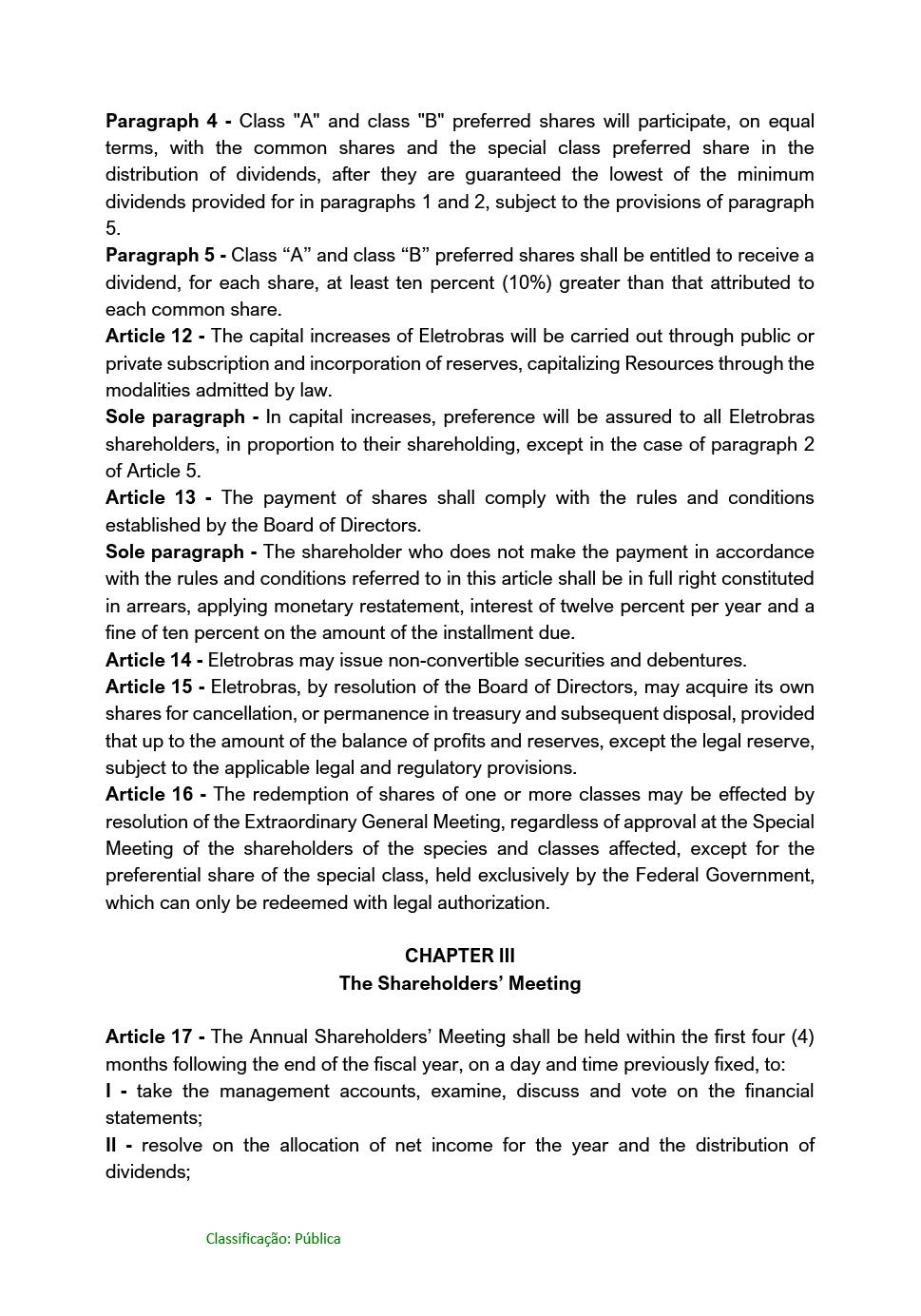 CENTRAIS ELÉTRICAS BRASILEIRAS S.A. - ELETROBRÁS