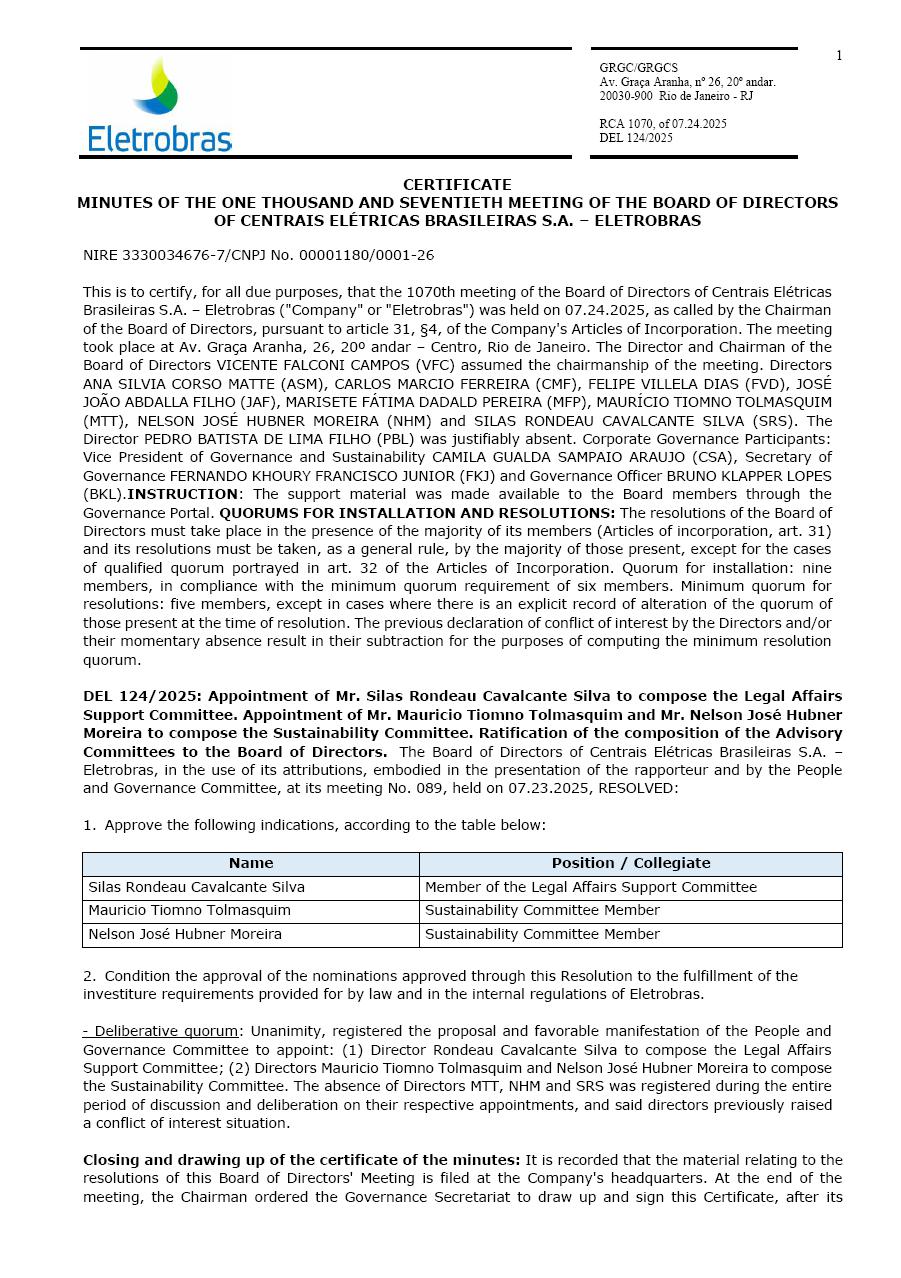 CENTRAIS ELÉTRICAS BRASILEIRAS S.A. - ELETROBRÁS