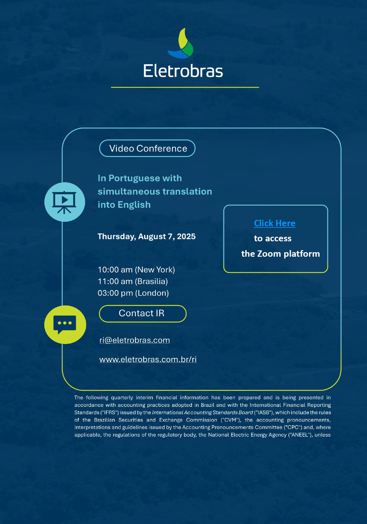 ELETROBRAS RELEASES 2ND QUARTER 2025 RESULTS