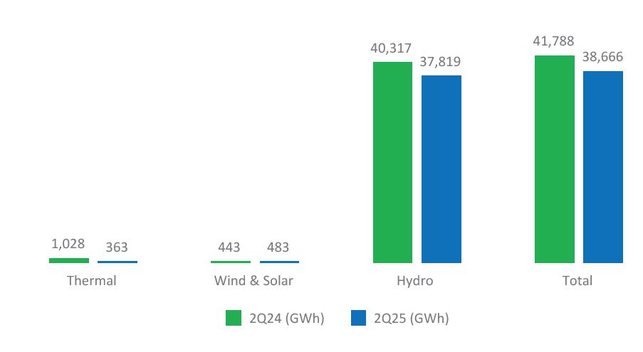 Generation Contribution Margin: the contribution of generation to the results increased from R$ 2,892 million in 2Q24 to R$ 3,345 million in 2Q25. This variation is explained by the increase in gross revenue, driven by the Company's energy trading strategy, which more than offset higher expenses with energy purchased for resale. Lower network usage charges also contributed positively to the generation segment’s results in the period.