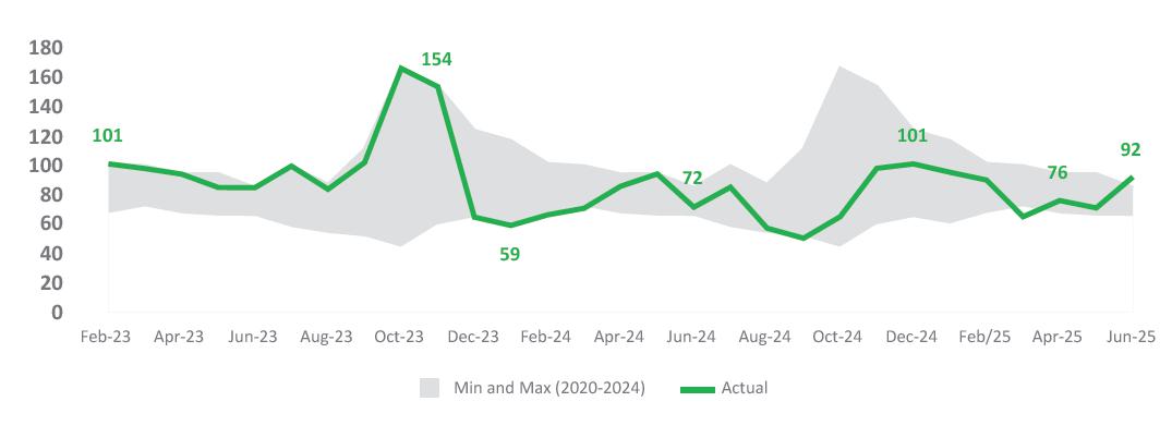 Adjusted PMSO: R$ 1,403 million (down -3.8% YoY), reflecting savings linked to efficiency gains. In 2Q25, adjusted PMSO was impacted by the following effects: