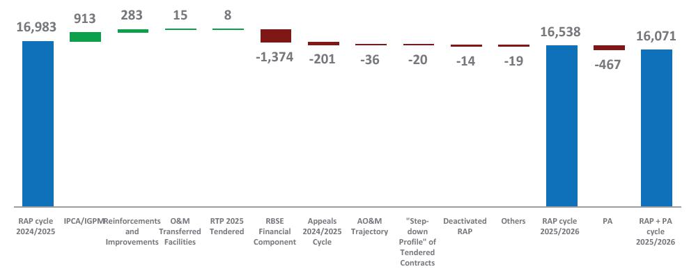 AO&M Trajectory: Reduction in the AO&M RAP (PRT 579/2012) due to the Efficient Operating Costs Trajectory, defined within the scope of the RTP 2023 for the extended concession contracts, which will remain in effect through the 2027–2028 cycle.