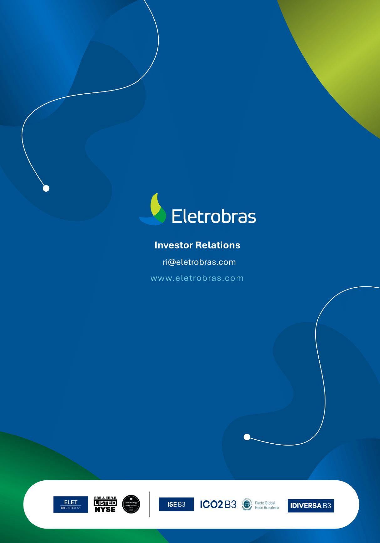 This document may contain estimates and projections that are not statements of past events but reflect our management’s beliefs and expectations and may constitute forward-looking statements under Section 27A of the Securities Act of 1933, as amended, and Section 21E of the Securities and Exchange Act of 1934, as amended. The words “believes”, “may”, “can”, “estimates”, “continues”, “anticipates”, “intends”, “expects”, and similar expressions are intended to identify estimates that necessarily involve known and unknown risks and uncertainties. Known risks and uncertainties include, but are not limited to: general economic, regulatory, political, and business conditions in Brazil and abroad; fluctuations in interest rates, inflation, and the value of the Brazilian Real; changes in consumer electricity usage patterns and volumes; competitive conditions; our level of indebtedness; the possibility of receiving payments related to our receivables; changes in rainfall and water levels in reservoirs used to operate our hydroelectric plants; our financing and capital investment plans; existing and future government regulations; and other risks described in our annual report and other documents filed with the CVM and SEC. Estimates and projections refer only to the date they were expressed, and we do not assume any obligation to update any of these estimates or projections due to new information or future events. Future results of the Company’s operations and initiatives may differ from current expectations, and investors should not rely solely on the information contained herein. This material contains calculations that may not reflect precise results due to rounding.