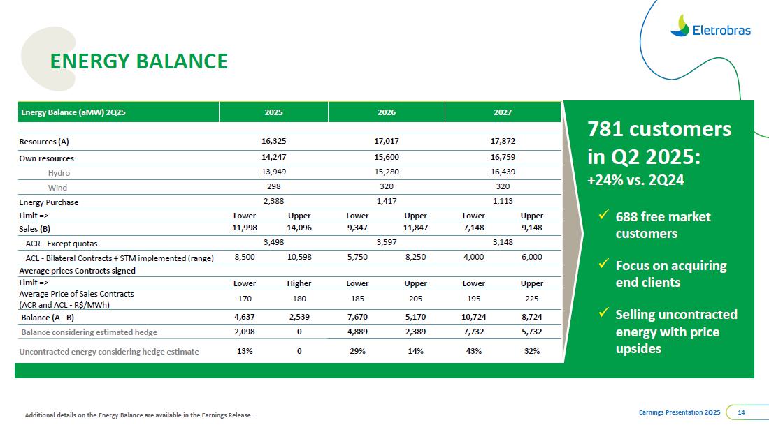 This document may contain estimates and projections that are not statements of past events but reflect our management’s beliefs and expectations and may constitute forward-looking statements under Section 27A of the Securities Act of 1933, as amended, and Section 21E of the Securities and Exchange Act of 1934, as amended. The words “believes”, “may”, “can”, “estimates”, “continues”, “anticipates”, “intends”, “expects”, and similar expressions are intended to identify estimates that necessarily involve known and unknown risks and uncertainties. Known risks and uncertainties include, but are not limited to: general economic, regulatory, political, and business conditions in Brazil and abroad; fluctuations in interest rates, inflation, and the value of the Brazilian Real; changes in consumer electricity usage patterns and volumes; competitive conditions; our level of indebtedness; the possibility of receiving payments related to our receivables; changes in rainfall and water levels in reservoirs used to operate our hydroelectric plants; our financing and capital investment plans; existing and future government regulations; and other risks described in our annual report and other documents filed with the CVM and SEC. Estimates and projections refer only to the date they were expressed, and we do not assume any obligation to update any of these estimates or projections due to new information or future events. Future results of the Company’s operations and initiatives may differ from current expectations, and investors should not rely solely on the information contained herein. This material contains calculations that may not reflect precise results due to rounding.
