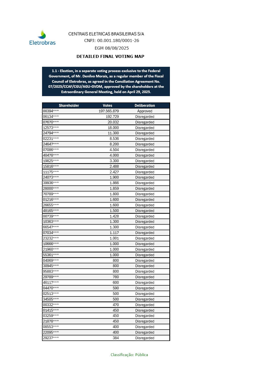 BRAZILIAN ELECTRIC POWER COMPANY