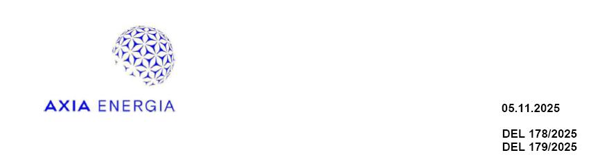 Ø  DEL-178/2025. Approval of the interim financial statements for the period ended 09/30/2025. (RES 428, of 11.04.2025). Axia Energia’s Board of Directors, in the use of the powers vested therein and as part of a proposal and decision from the Executive Board and the favorable opinion issued by the Audit and Risks Committee, HEREBY RESOLVES: