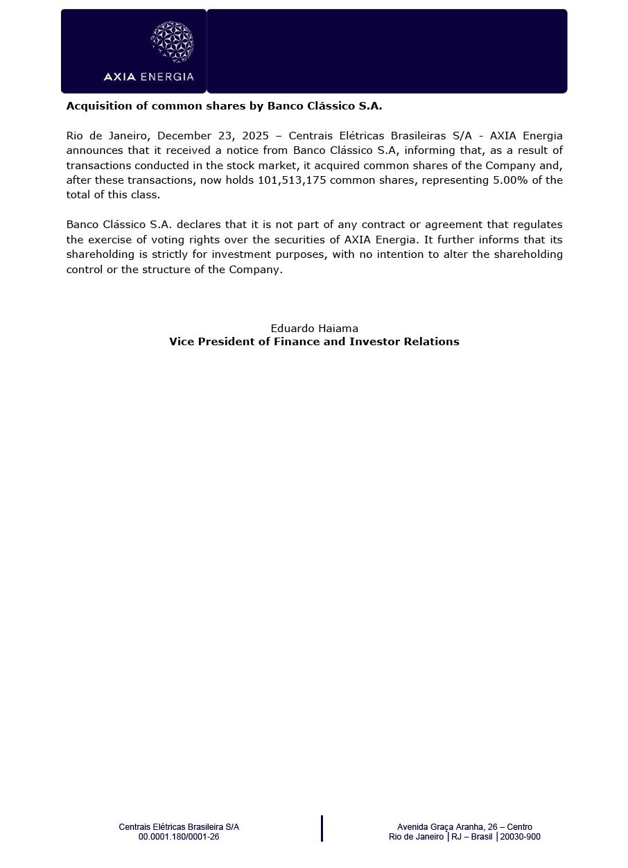 This document may contain estimates and projections that are not statements of past events but reflect our management’s beliefs and expectations and may constitute forward-looking statements under Section 27A of the Securities Act of 1933, as amended, and Section 21E of the Securities and Exchange Act of 1934, as amended. The words “believes”, “may”, “can”, “estimates”, “continues”, “anticipates”, “intends”, “expects”, and similar expressions are intended to identify estimates that necessarily involve known and unknown risks and uncertainties. Known risks and uncertainties include, but are not limited to: general economic, regulatory, political, and business conditions in Brazil and abroad; fluctuations in interest rates, inflation, and the value of the Brazilian Real; changes in consumer electricity usage patterns and volumes; competitive conditions; our level of indebtedness; the possibility of receiving payments related to our receivables; changes in rainfall and water levels in reservoirs used to operate our hydroelectric plants; our financing and capital investment plans; existing and future government regulations; and other risks described in our annual report and other documents filed with the CVM and SEC. Estimates and projections refer only to the date they were expressed, and we do not assume any obligation to update any of these estimates or projections due to new information or future events. Future results of the Company’s operations and initiatives may differ from current expectations, and investors should not rely solely on the information contained herein. This material contains calculations that may not reflect precise results due to rounding.