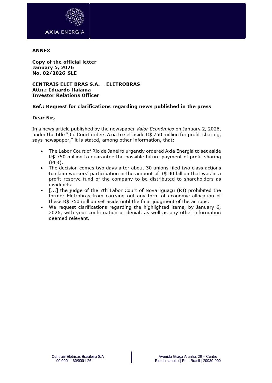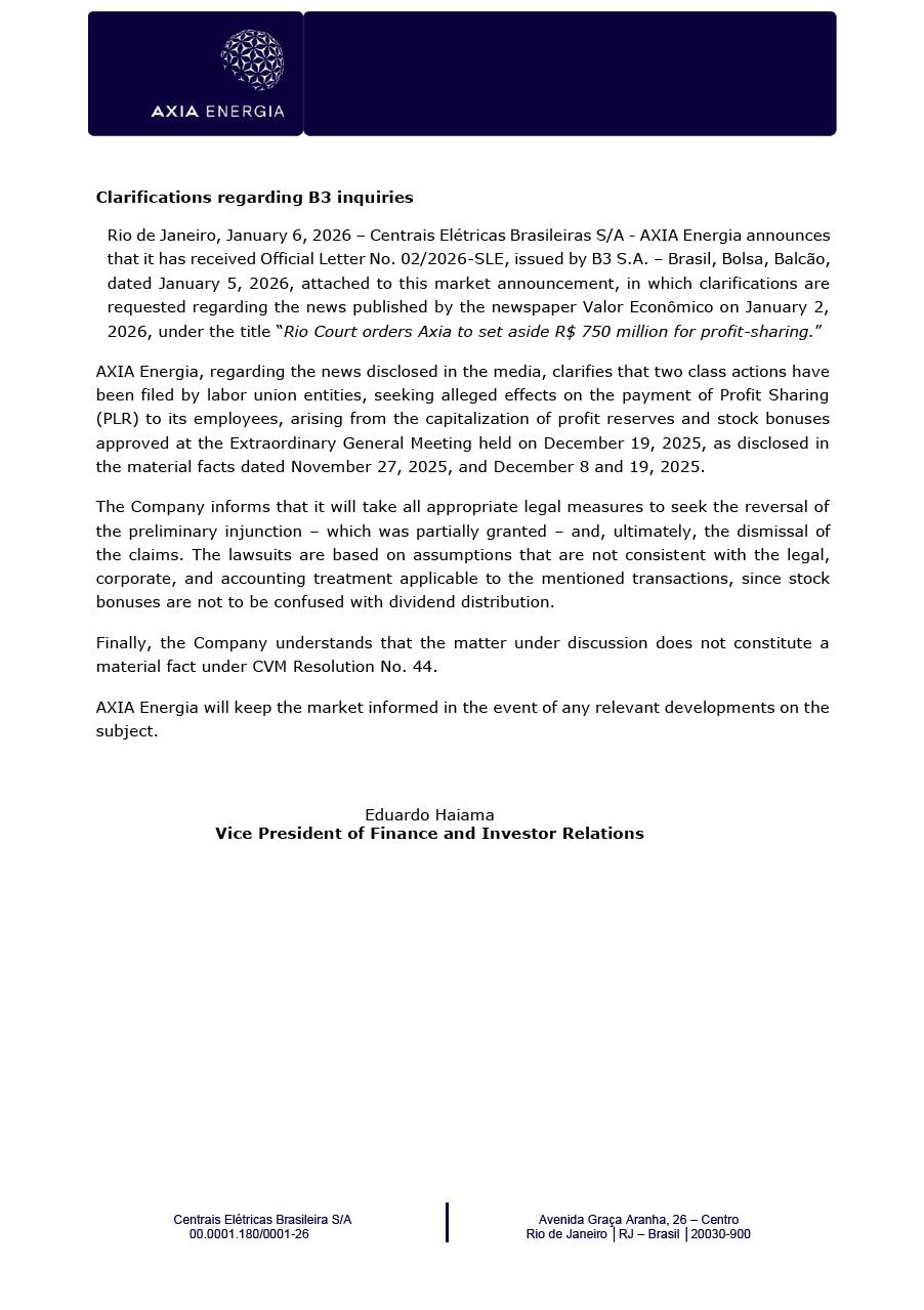 This document may contain estimates and projections that are not statements of past events but reflect our management’s beliefs and expectations and may constitute forward-looking statements under Section 27A of the Securities Act of 1933, as amended, and Section 21E of the Securities and Exchange Act of 1934, as amended. The words “believes”, “may”, “can”, “estimates”, “continues”, “anticipates”, “intends”, “expects”, and similar expressions are intended to identify estimates that necessarily involve known and unknown risks and uncertainties. Known risks and uncertainties include, but are not limited to: general economic, regulatory, political, and business conditions in Brazil and abroad; fluctuations in interest rates, inflation, and the value of the Brazilian Real; changes in consumer electricity usage patterns and volumes; competitive conditions; our level of indebtedness; the possibility of receiving payments related to our receivables; changes in rainfall and water levels in reservoirs used to operate our hydroelectric plants; our financing and capital investment plans; existing and future government regulations; and other risks described in our annual report and other documents filed with the CVM and SEC. Estimates and projections refer only to the date they were expressed, and we do not assume any obligation to update any of these estimates or projections due to new information or future events. Future results of the Company’s operations and initiatives may differ from current expectations, and investors should not rely solely on the information contained herein. This material contains calculations that may not reflect precise results due to rounding.
