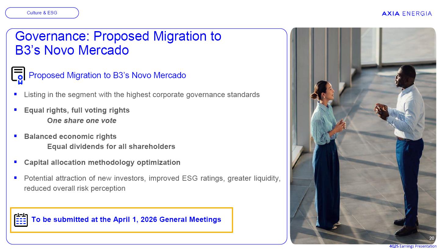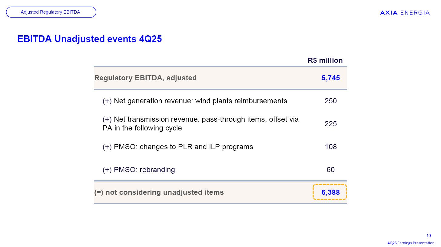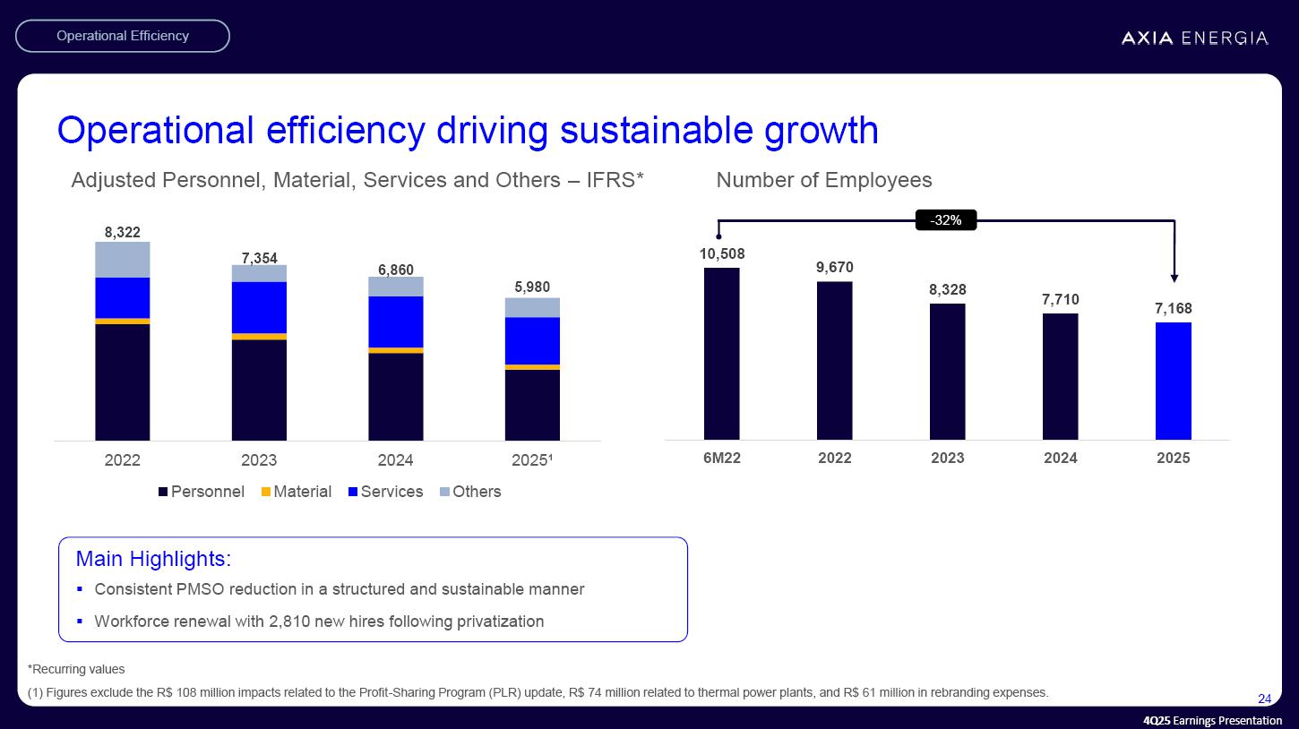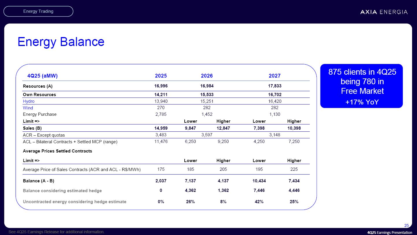 This document may contain estimates and projections that are not statements of past events but reflect our management’s beliefs and expectations and may constitute forward-looking statements under Section 27A of the Securities Act of 1933, as amended, and Section 21E of the Securities and Exchange Act of 1934, as amended. The words “believes”, “may”, “can”, “estimates”, “continues”, “anticipates”, “intends”, “expects”, and similar expressions are intended to identify estimates that necessarily involve known and unknown risks and uncertainties. Known risks and uncertainties include, but are not limited to: general economic, regulatory, political, and business conditions in Brazil and abroad; fluctuations in interest rates, inflation, and the value of the Brazilian Real; changes in consumer electricity usage patterns and volumes; competitive conditions; our level of indebtedness; the possibility of receiving payments related to our receivables; changes in rainfall and water levels in reservoirs used to operate our hydroelectric plants; our financing and capital investment plans; existing and future government regulations; and other risks described in our annual report and other documents filed with the CVM and SEC. Estimates and projections refer only to the date they were expressed, and we do not assume any obligation to update any of these estimates or projections due to new information or future events. Future results of the Company’s operations and initiatives may differ from current expectations, and investors should not rely solely on the information contained herein. This material contains calculations that may not reflect precise results due to rounding.