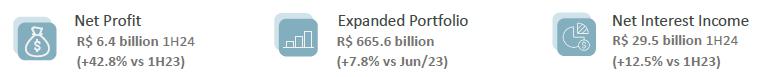 We consolidated our strategy with a good performance this semester. We highlight the good performance in volumes, based on liabilities, the expansion of our funding plan, in addition to the gradual resumption of business dynamics, which drives portfolio growth, benefiting the margin with a positive outlook for the year. We also observed more favorable performance in commissions, reinforcing the diversification of our portfolio. We maintained the good quality of our credit portfolio, which reinforces a positive trajectory for 2024, with controlled default rates. In the efficiency dimension, we will further consolidate our productivity culture. With this, we are building a solid, long-lasting portfolio with the capacity to generate sustainable results.