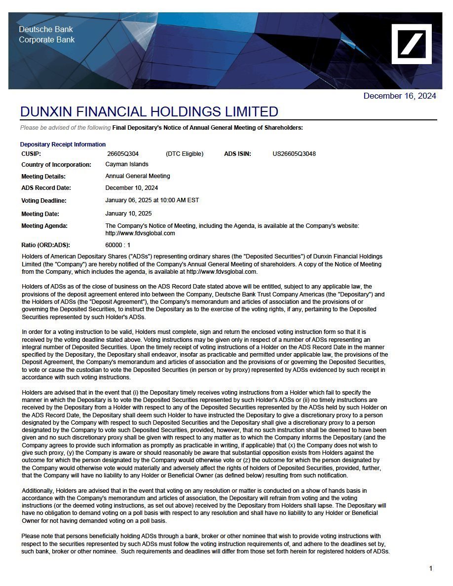 EX-99.3 4 dxf_ex993.htm DEPOSITARY NOTICE TO HOLDERS OF AMERICAN DEPOSITARY SHARES dxf_ex993.htm