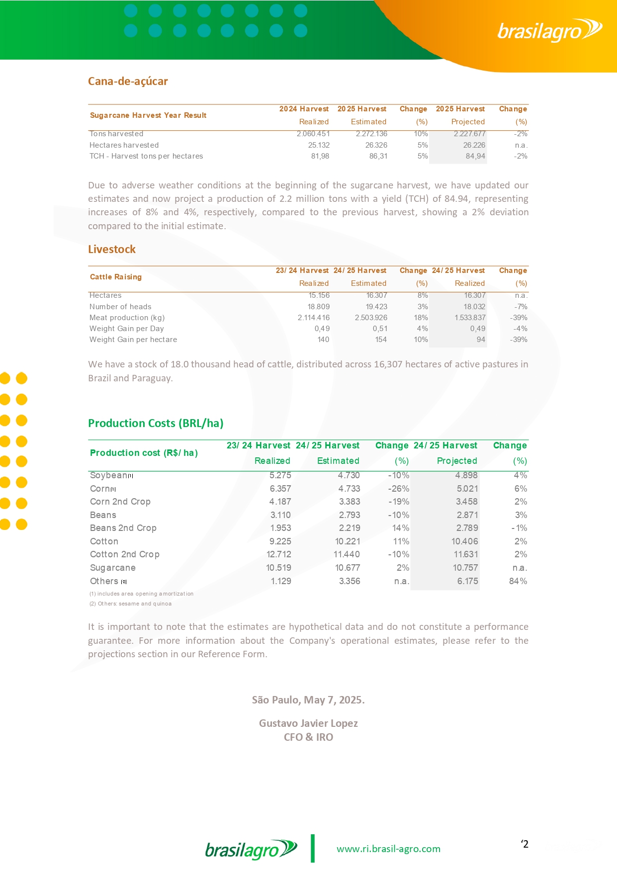 Tel. +55 11 3035 5350, Fax +55 11 3035 5366, ri@brasil-agro.com