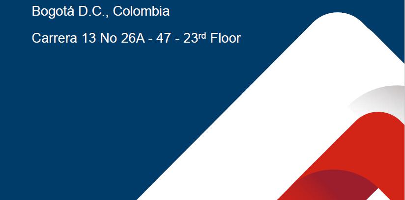 Address: Carrera 13 No 26A – 47- 23rd Floor