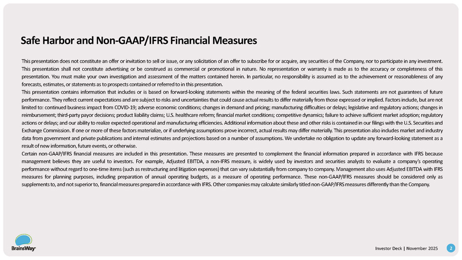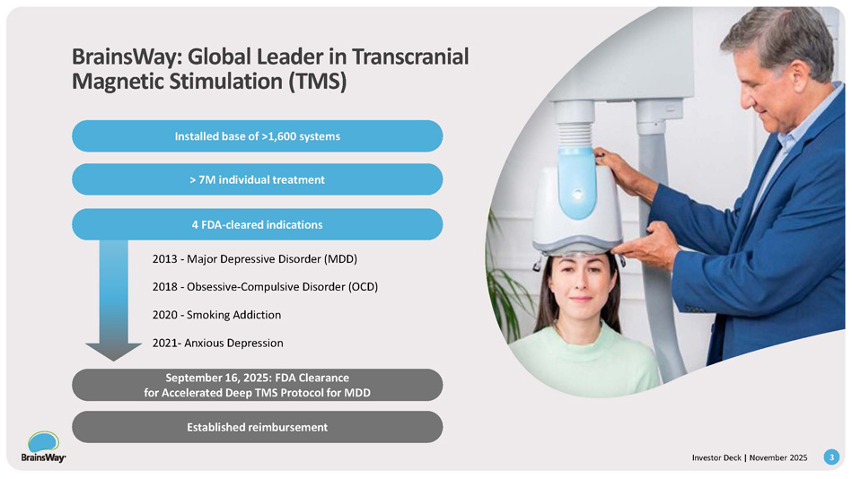 Advanced Noninvasive Neurostimulation Treatments for Mental Health Disorders Investor Deck November 2025 Nasdaq/TASE: BWAY Investor Deck | November 2025