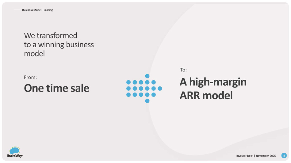 We transformed to a winning business model ——— — Business Model - Leasing From: One time sale To: A high - margin ARR model 8 Investor Deck | November 2025