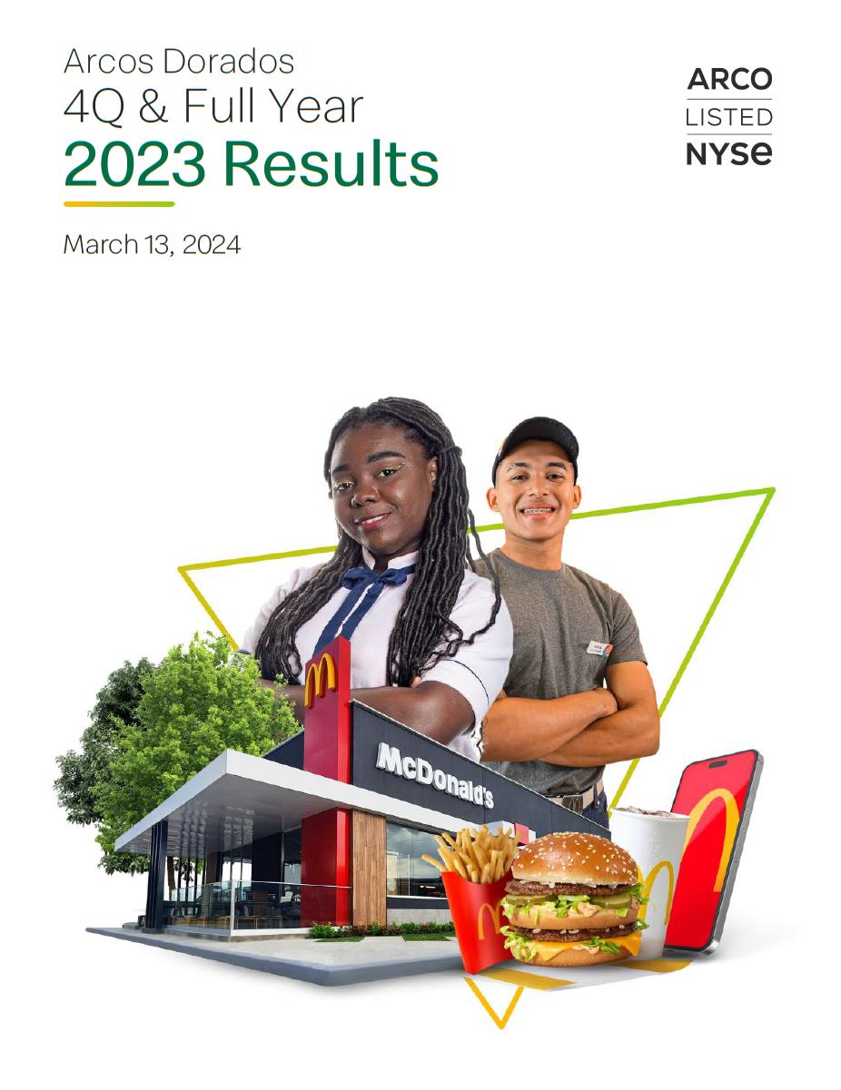Montevideo, Uruguay, March 13, 2024 – Arcos Dorados Holdings, Inc. (NYSE: ARCO) (“Arcos Dorados” or the “Company”), Latin America’s largest restaurant chain and the world’s largest independent McDonald’s franchisee, today reported unaudited results for the three months, and audited results for the twelve months, ended December 31, 2023.