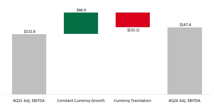 Consolidated Adjusted EBITDA1 in the fourth quarter and full year were $147.4 million and $500.1 million, respectively, the Company’s strongest US dollar results for each period.