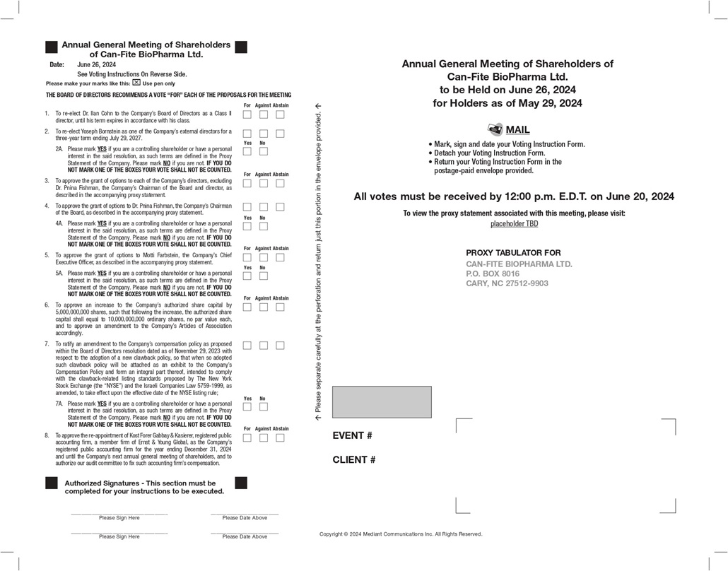 EX-99.3 4 ea020635801ex99-3_canfite.htm VOTING INSTRUCTION CARD FOR AMERICAN DEPOSITARY SHAREHOLDERS WITH RESPECT TO THE COMPANY'S ANNUAL GENERAL MEETING OF SHAREHOLDERS