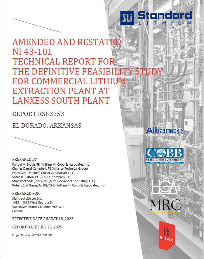 Dworzanowski, M., and D.R. Eccles, 2019. Preliminary Economic Assessment of LANXESS Smackover Project NI 43-101 Technical Report, Document No.: 207036-00088-00-PM-REP-0002, prepared for Standard Lithium, Saskatoon, Saskatchewan, Canada, August 1, 230p.