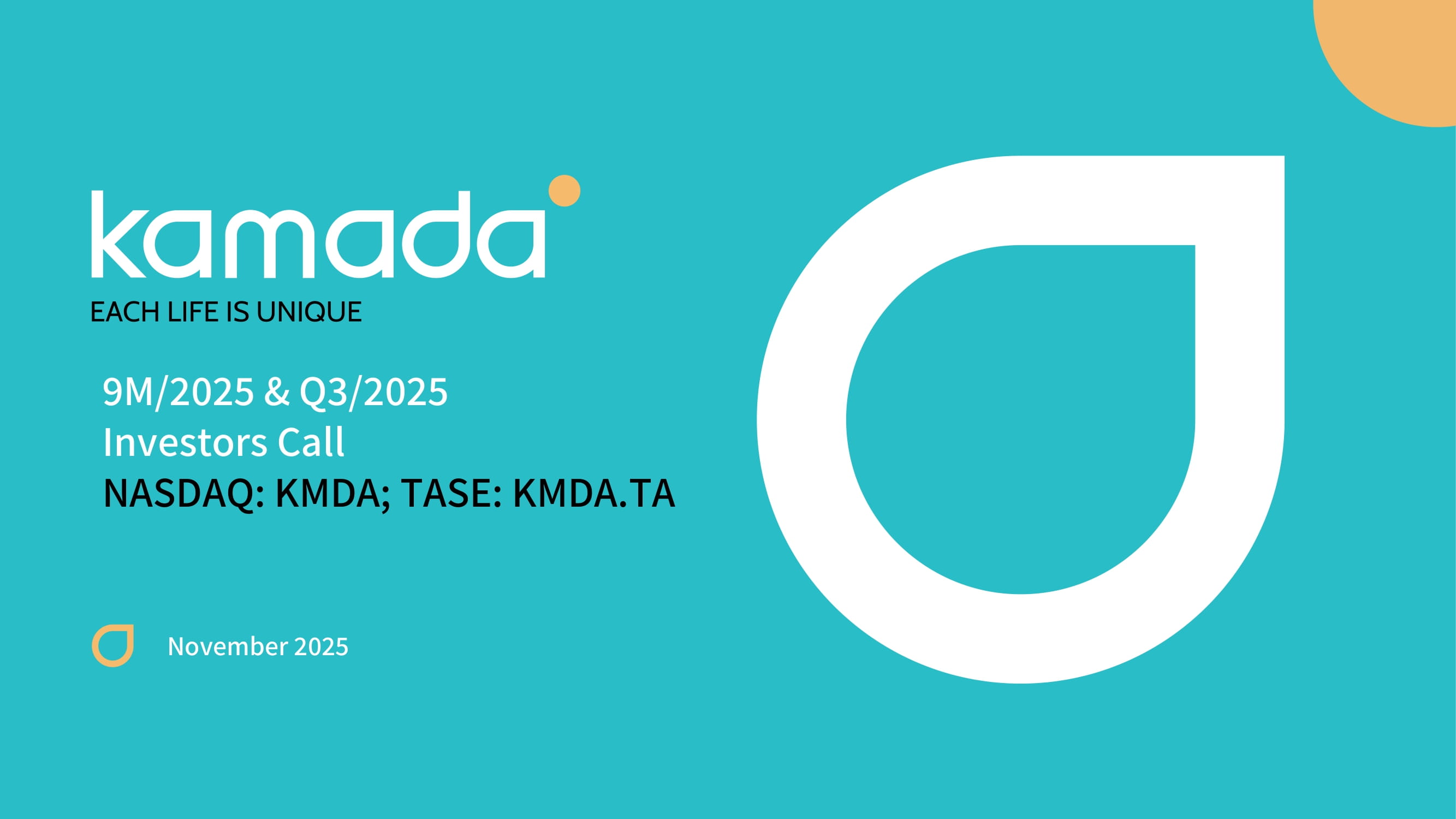 November 2025 9M/2025 & Q3/2025 Investors Call NASDAQ: KMDA; TASE: KMDA.TA