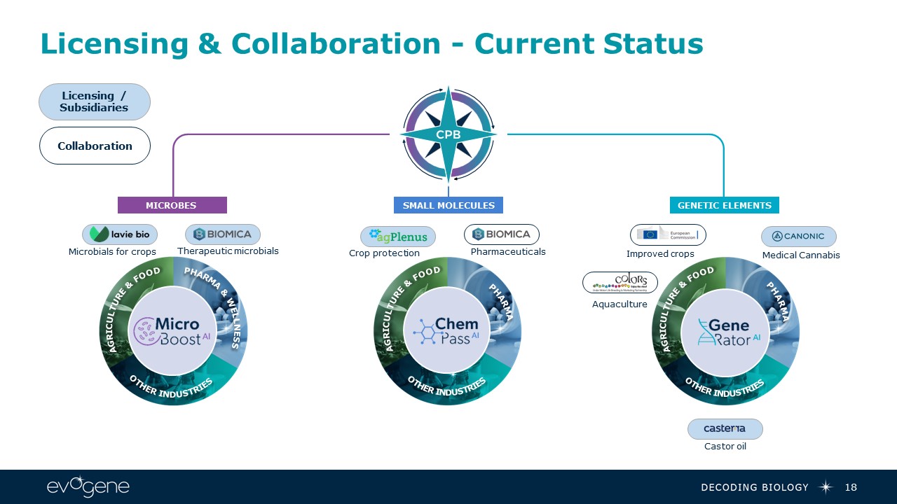 Collaboration  2 | Business Model   17  Collaborations Driven by Evogene’s AI Tech-Engines with Leading Life-Science Companies  Potential revenue stream   Upfront payments   R&D fees   Milestone payments   Royalties from sale of end-products  Powered by: