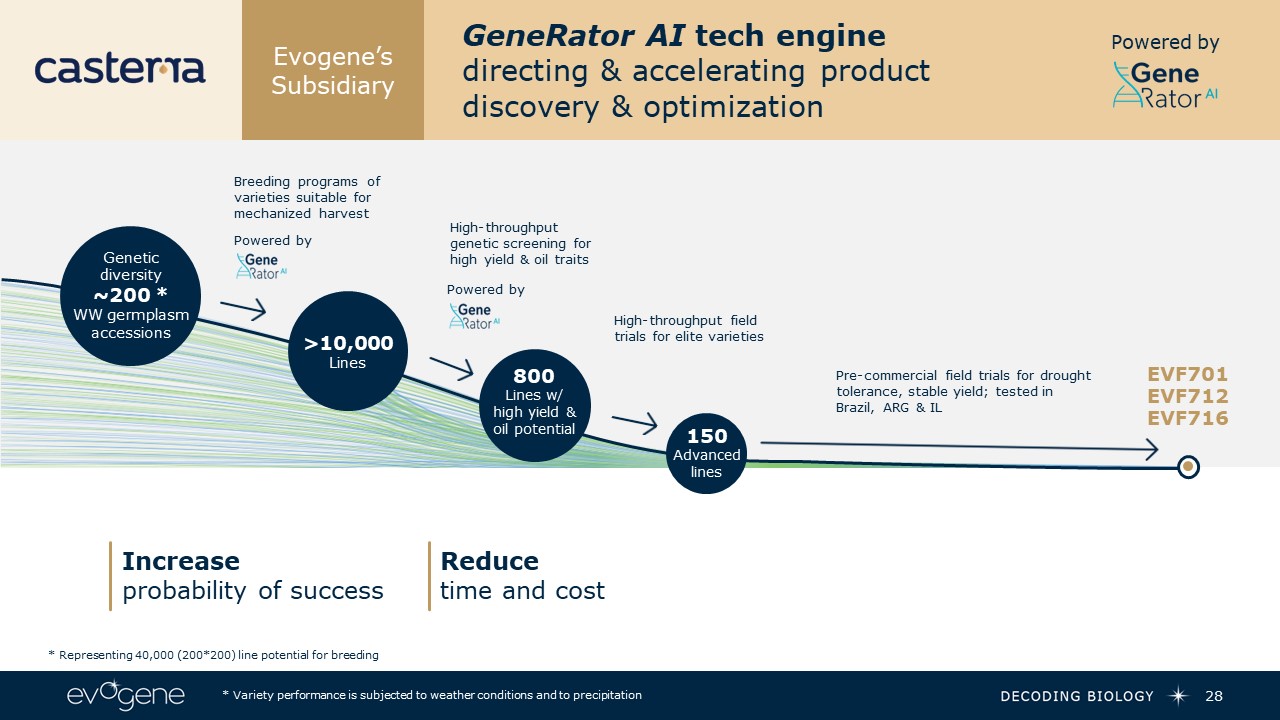 Evogene’s Subsidiary  Castor Seed Sales  27  Powered by  * Variety performance is subjected to weather conditions and to precipitation   $2.2 Million  $9.1 Million