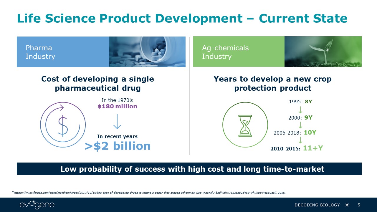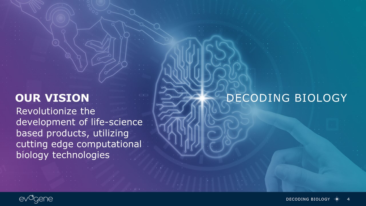 Our Vision  4  DECODING BIOLOGY  Revolutionize the development of life-science based products, utilizing cutting edge computational biology technologies
