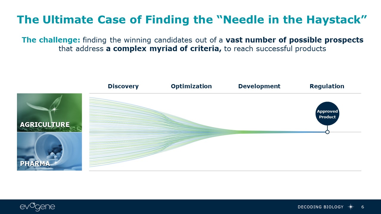 The Ultimate Case of Finding the “Needle in the Haystack”  6  The challenge: finding the winning candidates out of a vast number of possible prospects that address a complex myriad of criteria, to reach successful products  Agriculture  Pharma  Discovery  Optimization  Development  Regulation  ApprovedProduct