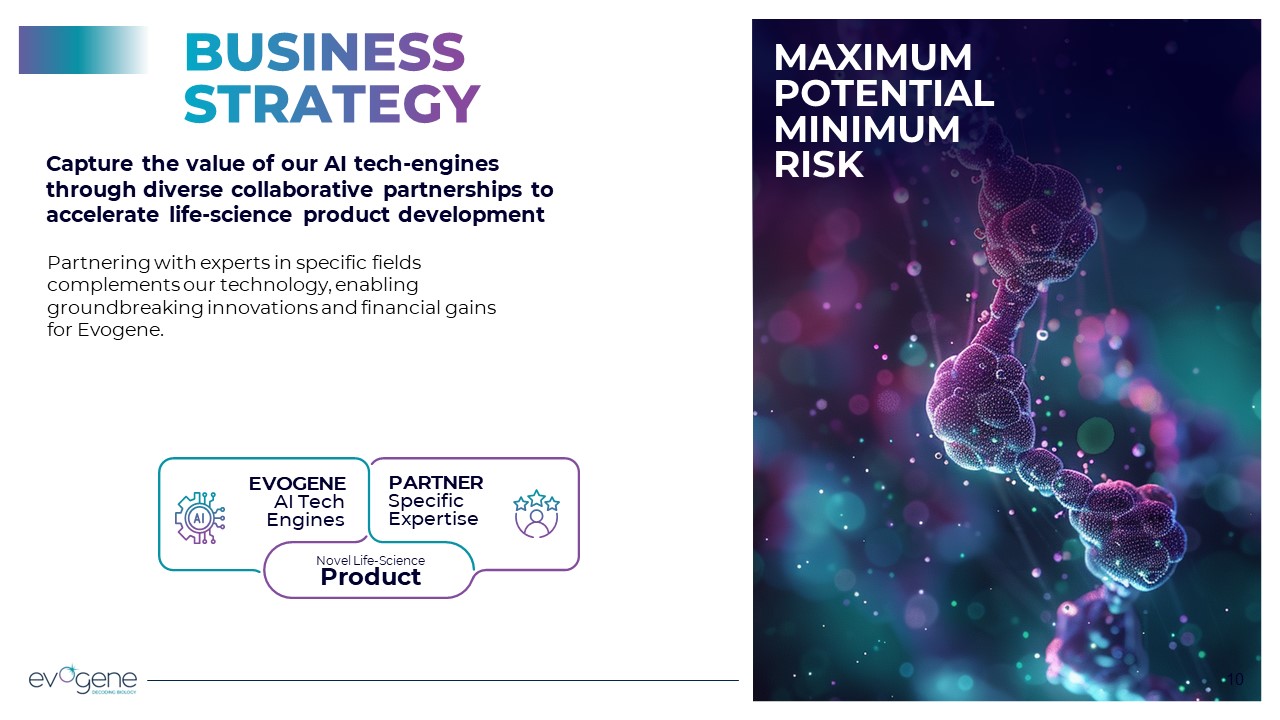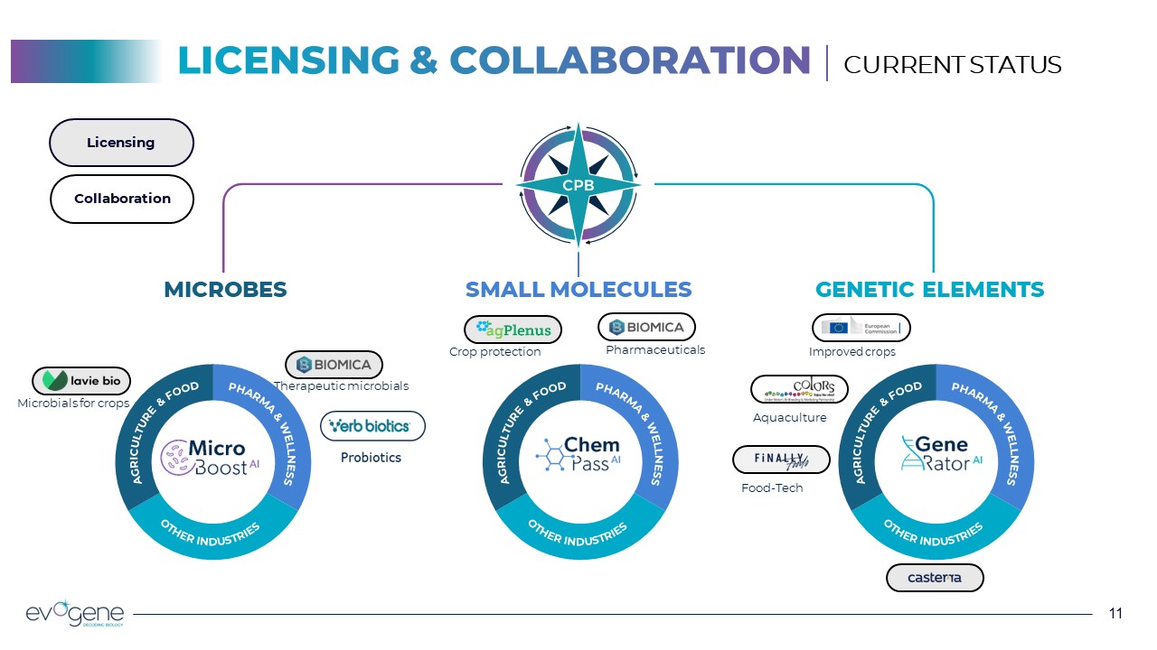 10  BUSINESS STRATEGY  Capture the value of our AI tech-engines through diverse collaborative partnerships to accelerate life-science product development  Partnering with experts in specific fields complements our technology, enabling groundbreaking innovations and financial gains for Evogene.  EVOGENE AI Tech Engines  Novel Life-Science   Product  PARTNER  Specific Expertise  MAXIMUM POTENTIAL MINIMUM RISK