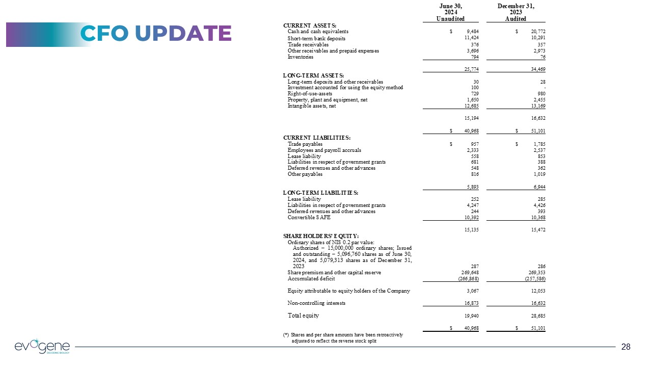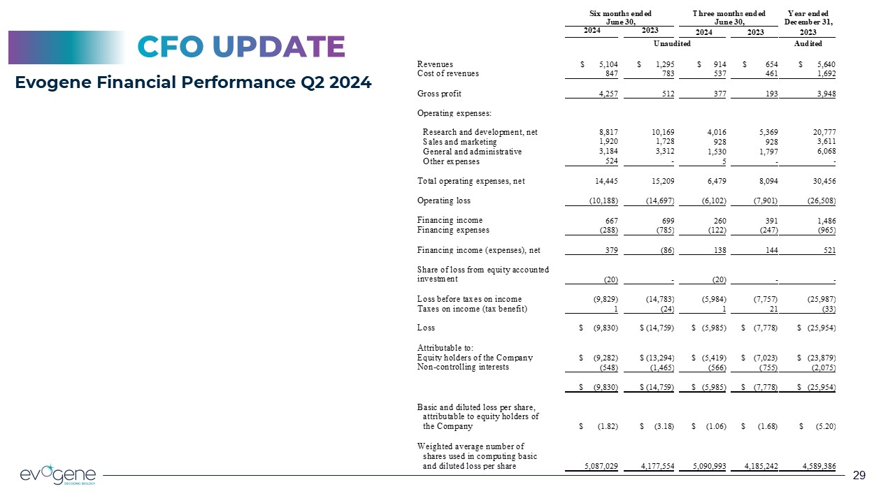CFO UPDATE  Evogene Financial Performance Q2 2024  29