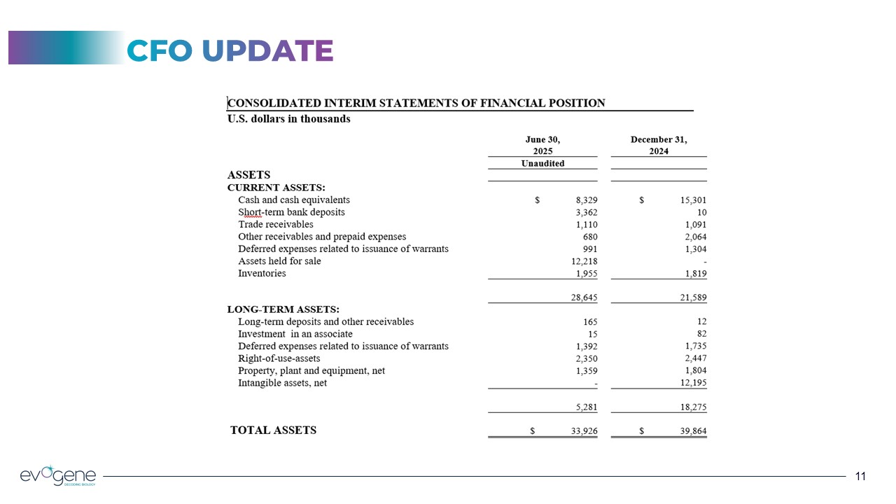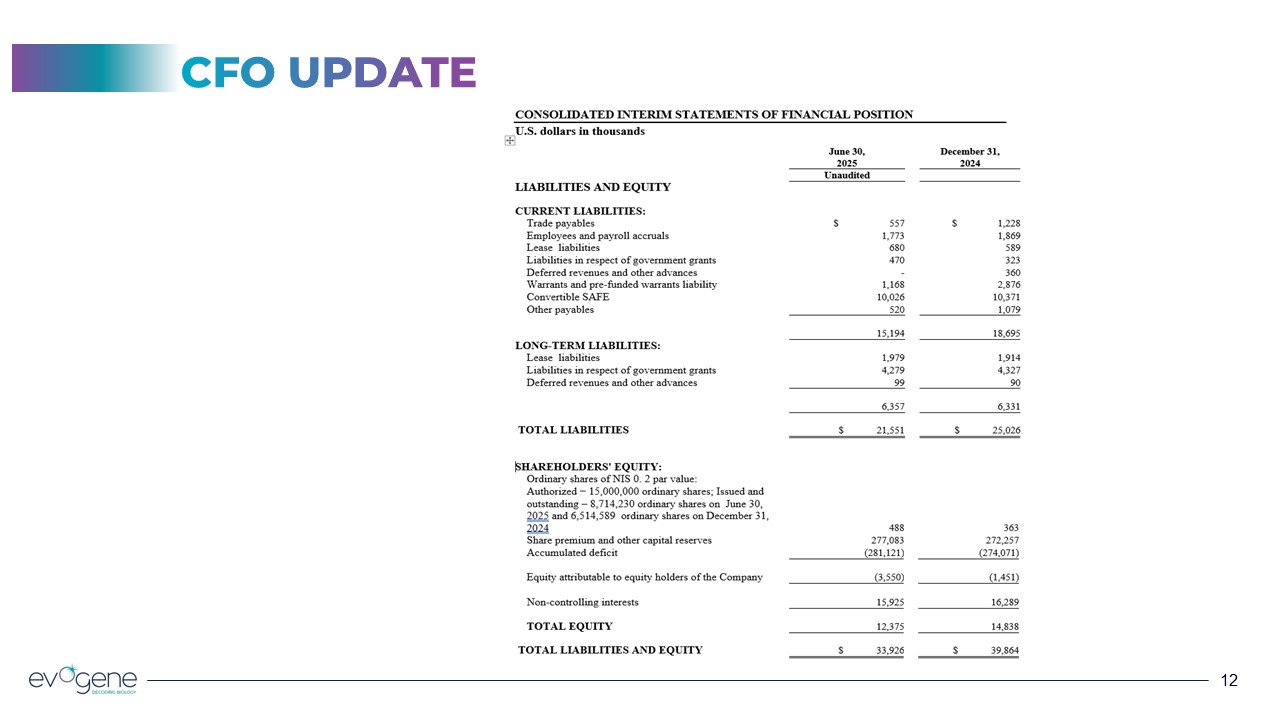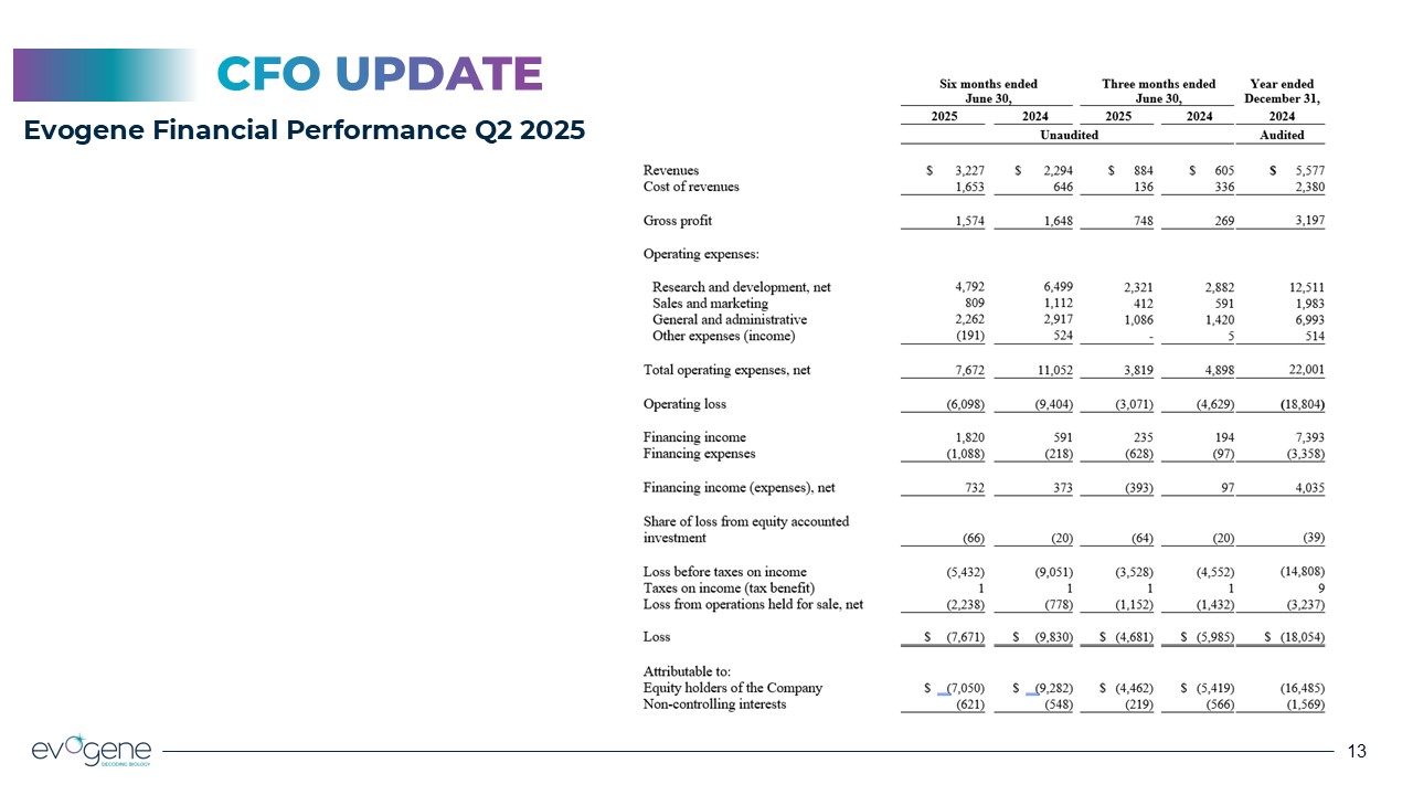 CFO UPDATE  Evogene Financial Performance Q2 2025  13