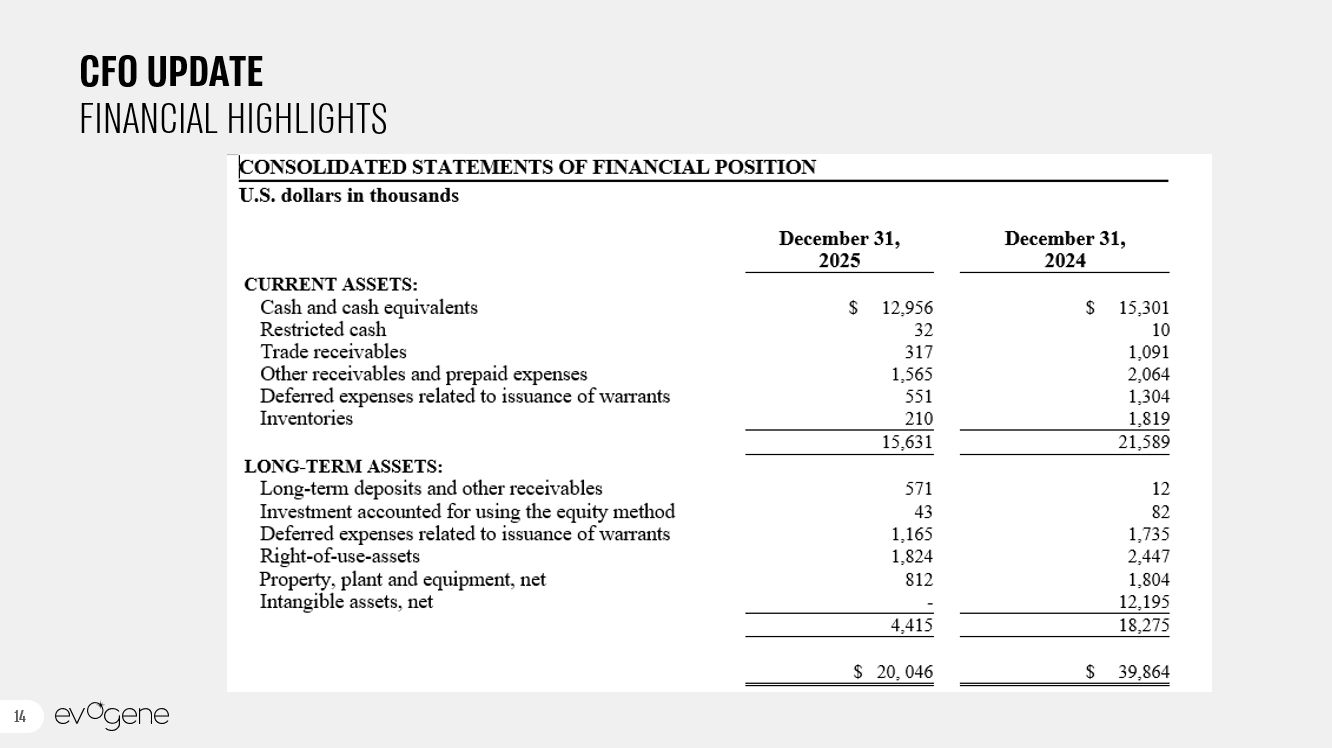 13  EVOGENE SUBSIDIARIES’ ACTIVITY
