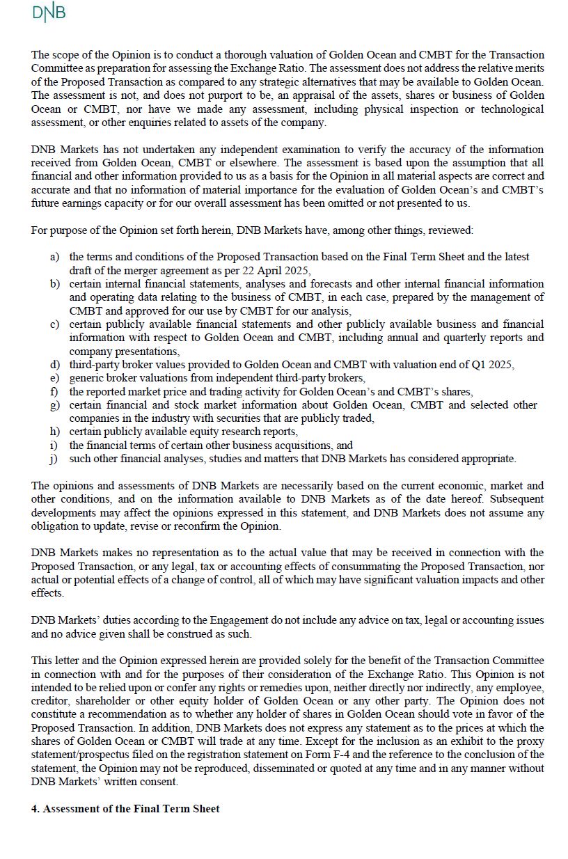 Golden Ocean press release dated 28 May 2025 (“Merger Between CMB.TECH and Golden Ocean”)