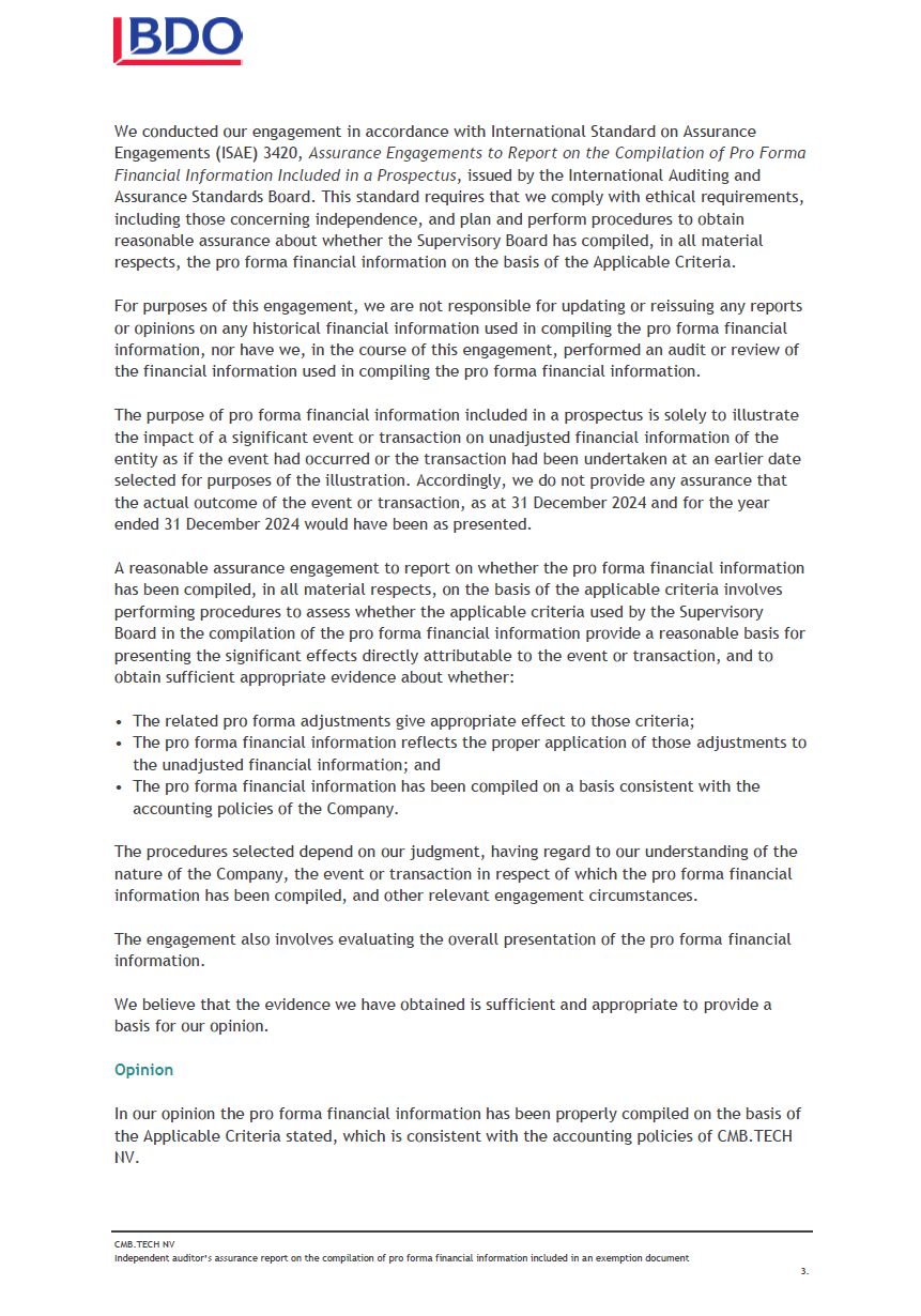 The forward-looking statements speak only as at the date of this Exemption Document, or as otherwise stated therein. CMB.TECH undertakes no obligation to publicly update or publicly revise any forward-looking statement, whether as a result of new information, future events or otherwise. All subsequent written and oral forward-looking statements attributable to CMB.TECH or to persons acting on behalf of CMB.TECH are expressly qualified in their entirety by the cautionary statements referred to above and contained elsewhere in this Exemption Document.