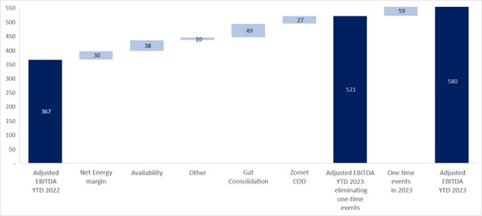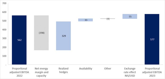 Increase of 58% in the EBITDA compared with last year – including a negative impact of the of the hourly demand brackets, in the amount of about NIS 33 million.