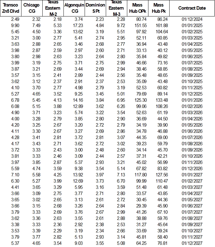 Gas price (Texas Eastern M2, as of 2026: M3)