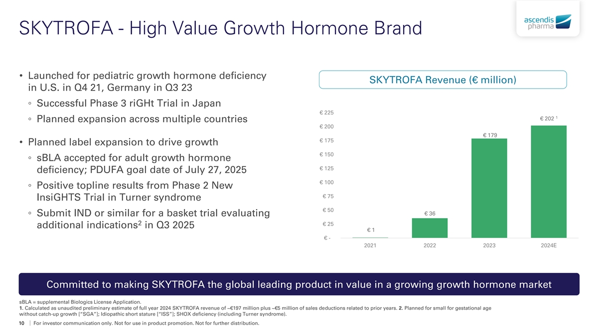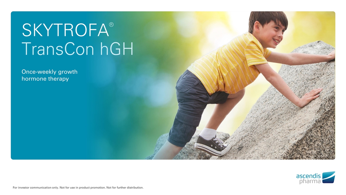 ® SKYTROFA TransCon hGH Once-weekly growth hormone therapy For investor communication only. Not for use in product promotion. Not for further distribution.