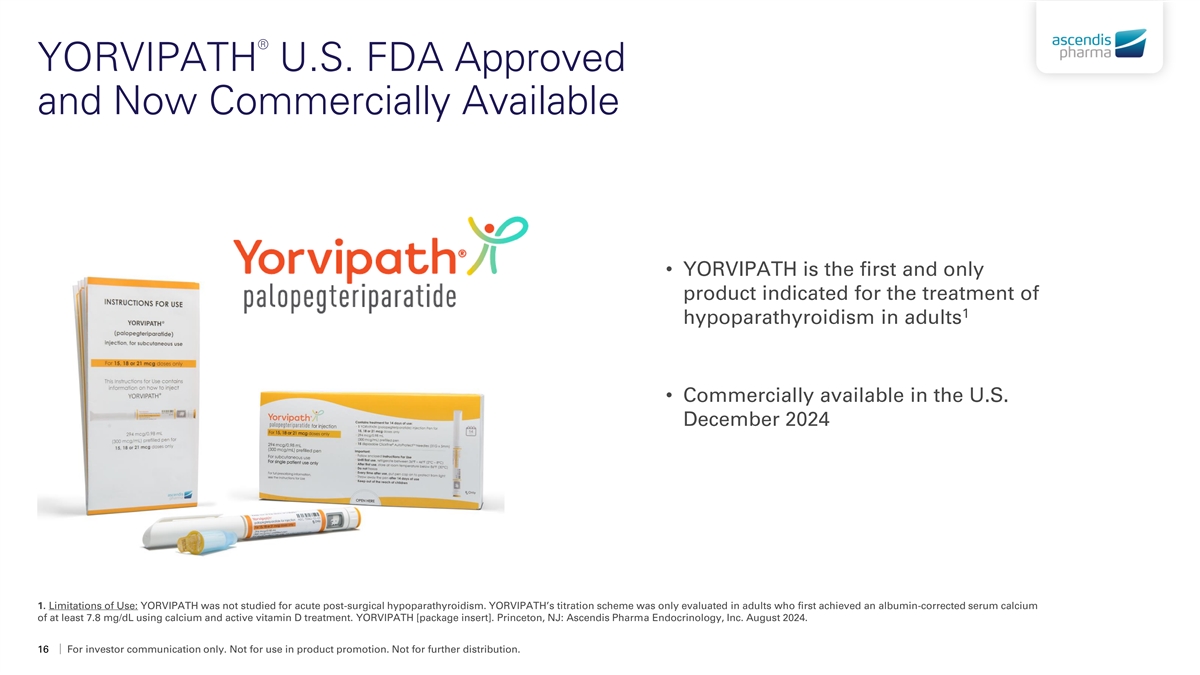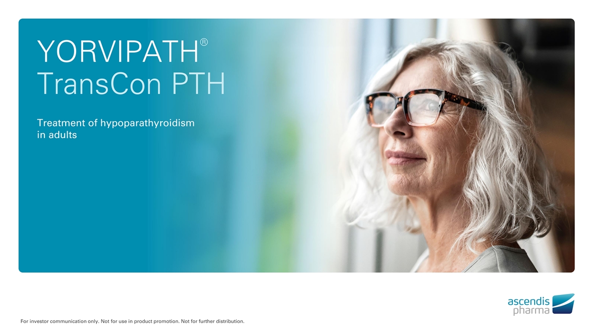 ® YORVIPATH TransCon PTH Treatment of hypoparathyroidism in adults For investor communication only. Not for use in product promotion. Not for further distribution.