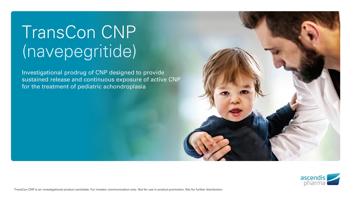 ® YORVIPATH TransCon CNP TransCon PTH (navepegritide) Investigatio Treatment of nal Hypo prod parath rug of yroidism CNP designed to provide in sustained Adults release and continuous exposure of active CNP for the treatment of pediatric achondroplasia TransCon CNP is an investigational product candidate. For investor communication only. Not for use in product promotion. Not for further distribution.