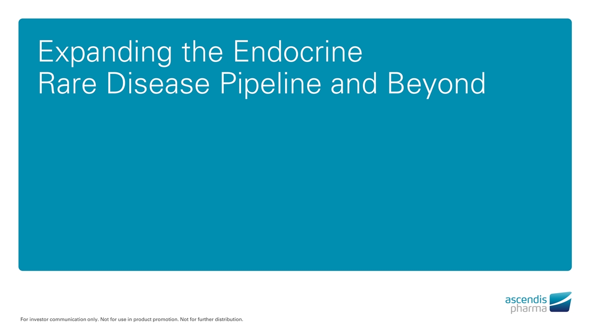 Expanding the Endocrine Rare Disease Pipeline and Beyond For investor communication only. Not for use in product promotion. Not for further distribution.