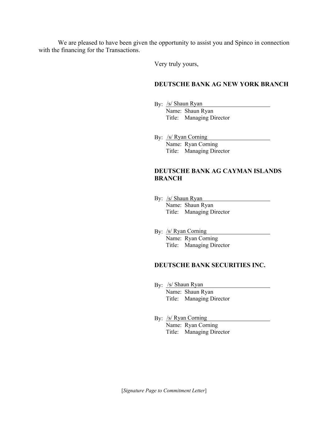 [Signature Page to Commitment Letter] We are pleased to have been given the opportunity to assist you and Spinco in connection with the financing for the Transactions. Very truly yours, DEUTSCHE BANK AG NEW YORK BRANCH By: Name: Shaun Ryan Title: Managing Director By: Name: Ryan Corning Title: Managing Director DEUTSCHE BANK AG CAYMAN ISLANDS BRANCH By: Name: Shaun Ryan Title: Managing Director By: Name: Ryan Corning Title: Managing Director DEUTSCHE BANK SECURITIES INC. By: Name: Shaun Ryan Title: Managing Director By: Name: Ryan Corning Title: Managing Director /s/ Shaun Ryan /s/ Shaun Ryan /s/ Shaun Ryan /s/ Ryan Corning /s/ Ryan Corning /s/ Ryan Corning