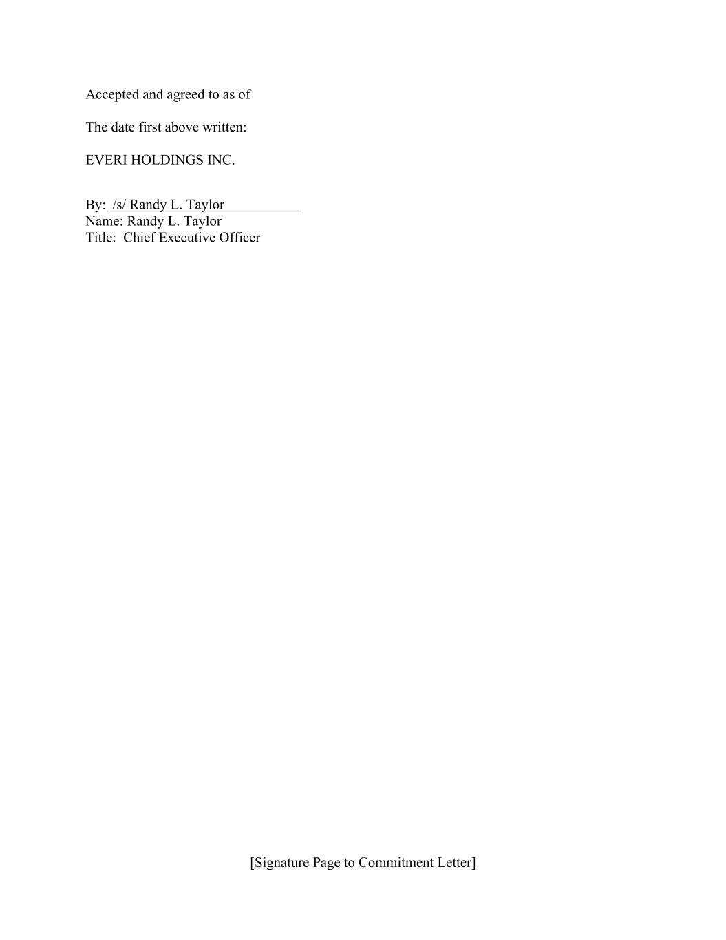 [Signature Page to Commitment Letter] Accepted and agreed to as of The date first above written: EVERI HOLDINGS INC. By: Name: Randy L. Taylor Title: Chief Executive Officer /s/ Randy L. Taylor