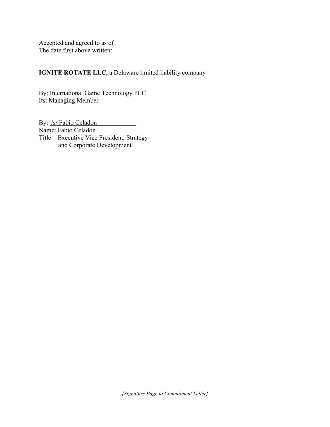 [Signature Page to Commitment Letter] Accepted and agreed to as of The date first above written: IGNITE ROTATE LLC, a Delaware limited liability company By: International Game Technology PLC Its: Managing Member By: Name: Fabio Celadon Title: Executive Vice President, Strategy and Corporate Development /s/ Fabio Celadon