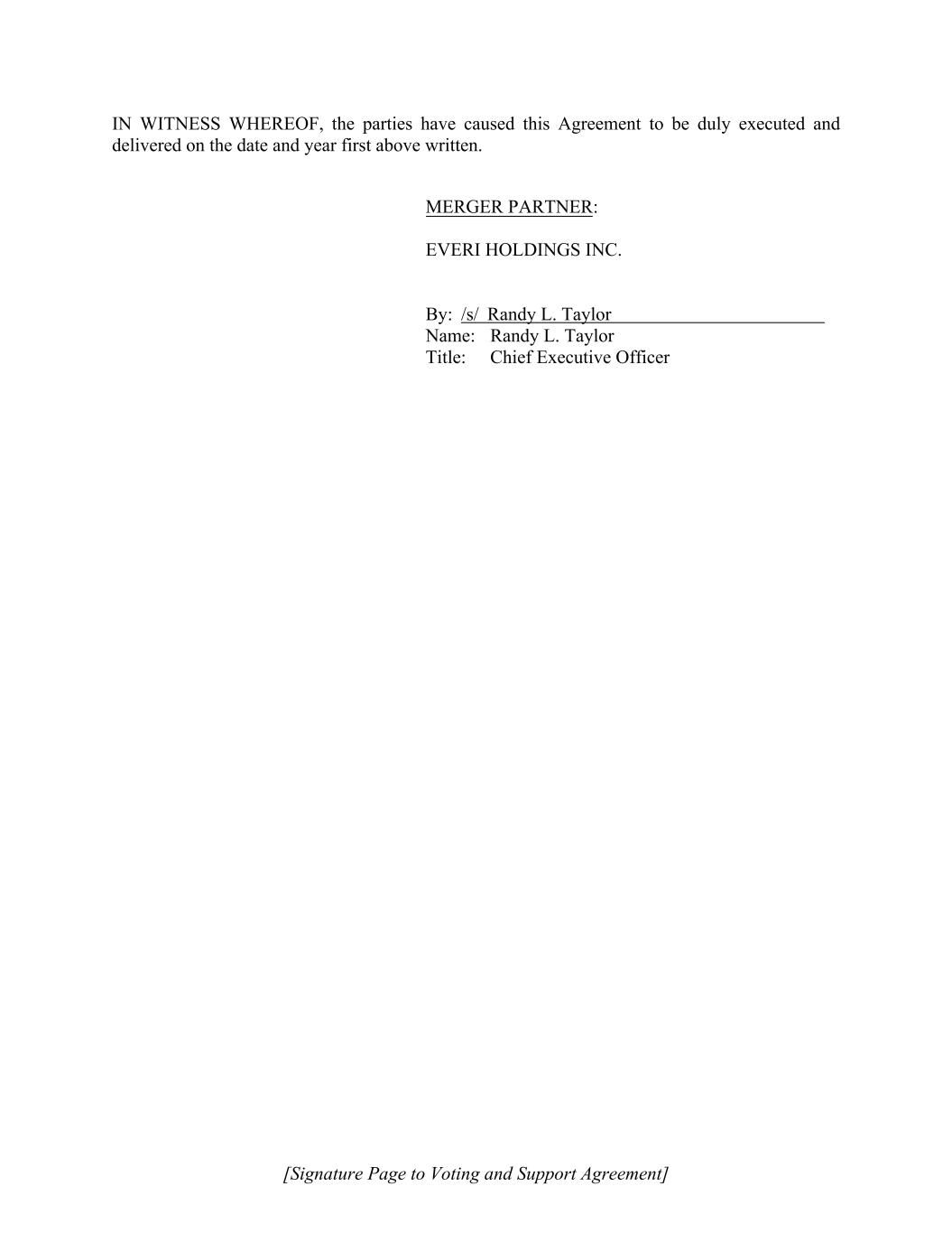 [Signature Page to Voting and Support Agreement] IN WITNESS WHEREOF, the parties have caused this Agreement to be duly executed and delivered on the date and year first above written. MERGER PARTNER: EVERI HOLDINGS INC. By: /s/ Randy L. Taylor Name: Randy L. Taylor Title: Chief Executive Officer