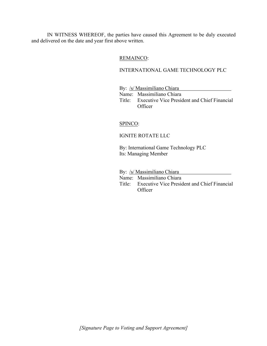 [Signature Page to Voting and Support Agreement] IN WITNESS WHEREOF, the parties have caused this Agreement to be duly executed and delivered on the date and year first above written. REMAINCO: INTERNATIONAL GAME TECHNOLOGY PLC By: /s/ Massimiliano Chiara Name: Massimiliano Chiara Title: Executive Vice President and Chief Financial Officer SPINCO: IGNITE ROTATE LLC By: International Game Technology PLC Its: Managing Member By: /s/ Massimiliano Chiara Name: Massimiliano Chiara Title: Executive Vice President and Chief Financial Officer