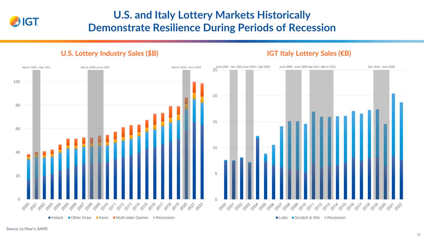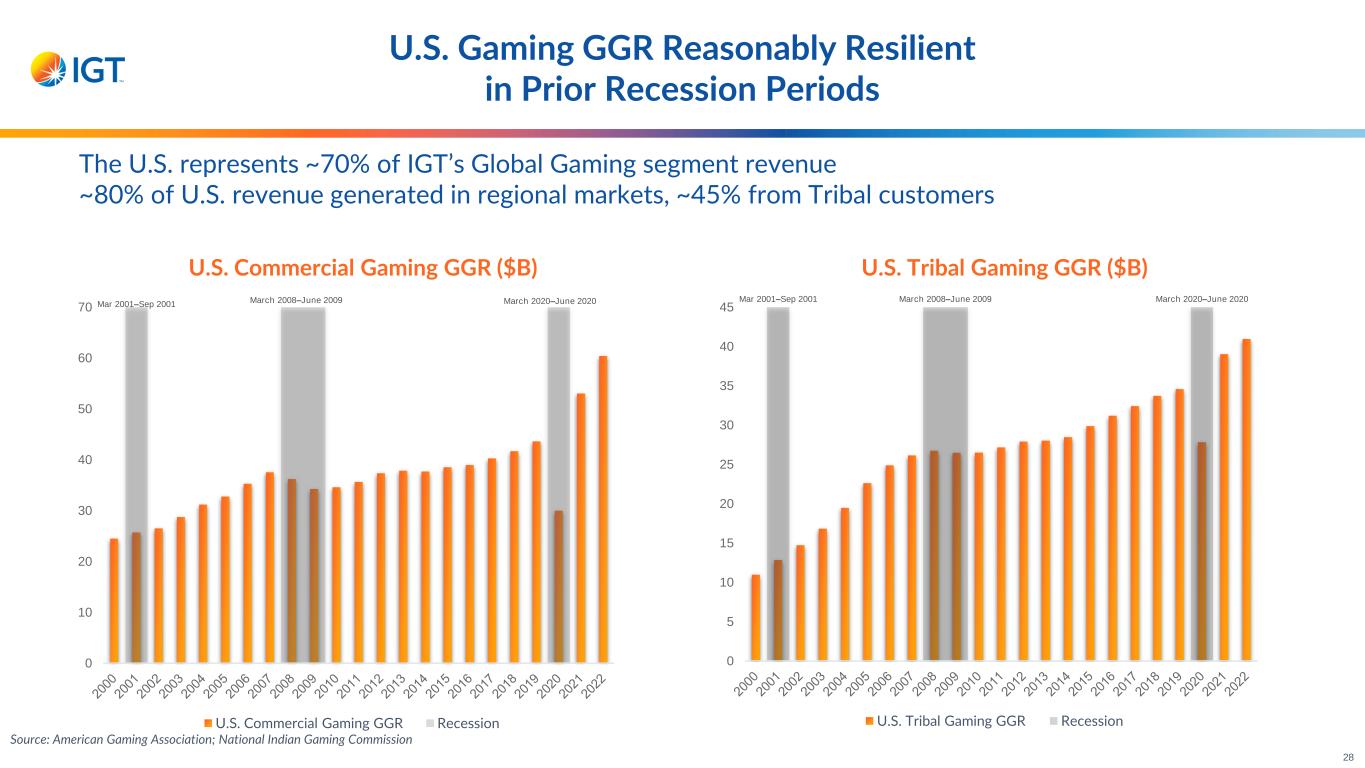 U.S. and Italy Lottery Markets Historically Demonstrate Resilience During Periods of Recession U.S. Lottery Industry Sales ($B) March 2001– Sep 2001 March 2008–June 2009 March 2020– June 2020 0 20 40 60 80 100 Instant Other Draw Keno Multi-state Games Recession IGT Italy Lottery Sales (€B) June 2001 - Dec 2001June 2003 – Sep 2003 June 2008 - June 2009 Sep 2011- March 2013 Dec 2019 - June 2020 0 5 10 15 20 25 Lotto Scratch & Win Recession Source: La Fleur’s; AAMS 27