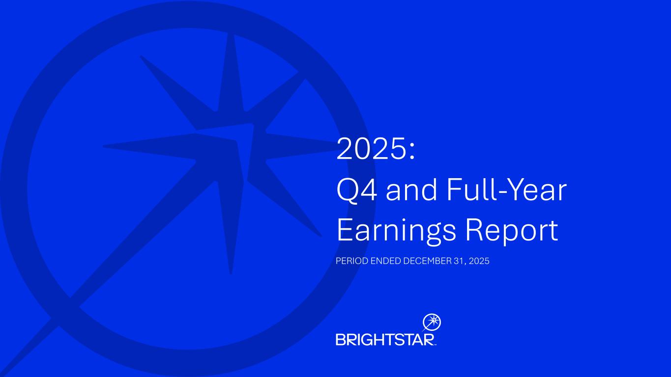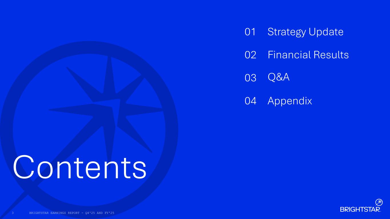 Contents 03 Appendix04 01 Strategy Update 02 Financial Results Q&A BRIGHTSTAR EARNINGS REPORT - Q4'25 AND FY'253