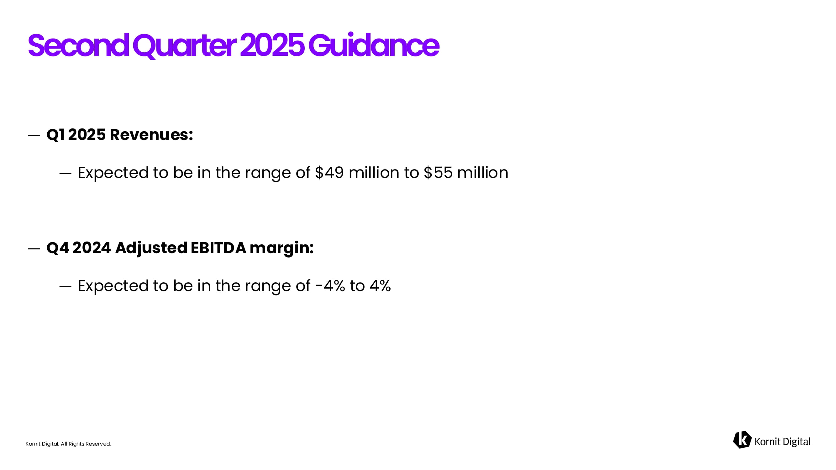 Kornit Digital. All Rights Reserved. ― Q1 2025 Revenues: ― Expected to be in the range of $49 million to $55 million ― Q4 2024 Adjusted EBITDA margin: ― Expected to be in the range of - 4% to 4% Second Quarter 2025 Guidance