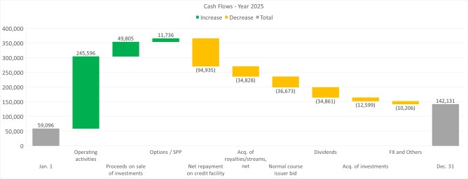 • Record revenues from royalties and streams of $277.4 million ($191.2 million in 2024);