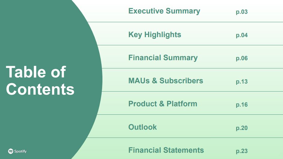 Table of Contents  Key Highlights  Financial Summary  MAUs & Subscribers  Product & Platform  Outlook  Financial Statements  Executive Summary  p.03  p.04  p.06  p.13  p.16  p.20  p.23